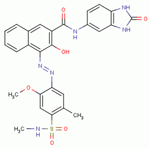 nimiä:2-naftaleenikarboksamidi, N- (2,3-dihydro-2-okso-1H-bentsimidatsol-5-yyli) -3-hydroksi-4 - ((2-metoksi-5-metyyli-4 - ((metyyliamino) sulfonyyli)) fenyyli) atso) -; 2-naftaleenikarboksamidi, N- (2,3-dihydro-2-okso-1 H-bentsimidatsol-5-yyli) -3-hydroksi-4- (2- (2-metoksi-5-metyyli-4 - ((metyyliamino)) sulfonyyli) fenyyli) diazenyl) -; N- (2,3-dihydro-2-okso-1 H-bentsimidatsol-5-yyli) -3-hydroksi-4 - ((2-metoksi-5-metyyli-4 - ((metyyliamino) sulfonyyli) fenyyli) atso) naftaleeni-2-karboksamidi; 12516; Syvä scarlet; Pysyvä karmiini HF4C; Pioninpunainen [HO]; ; (4Z) -4- {2- [2-metoksi-5-metyyli-4- (metyylisulfamoyyli) fenyyli] hydrazinylidene} -3-okso-N- (2-okso-2,3-dihydro-1 H-bentsimidatsol-5 yyli) -3,4-dihydronaftaleeni-2-karboksamidi